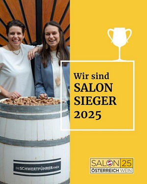 Mit ihrem Rotgipfler Ried Saxerl 2023 holen sich Kerstin und Sigrid Schwertführer aus Sooß heuer den ersten Platz in der Kategorie gebietstypische Weine und bringen somit einen SALON-Sieger nach Sooß.